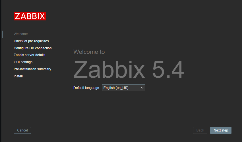 접속 URL : http://‘서버IP’/zabbix/setup.php